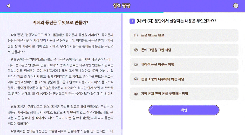 수능 유형 문제로 문해력을 다질 수 있습니다.