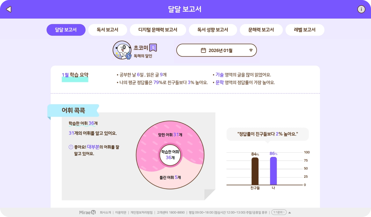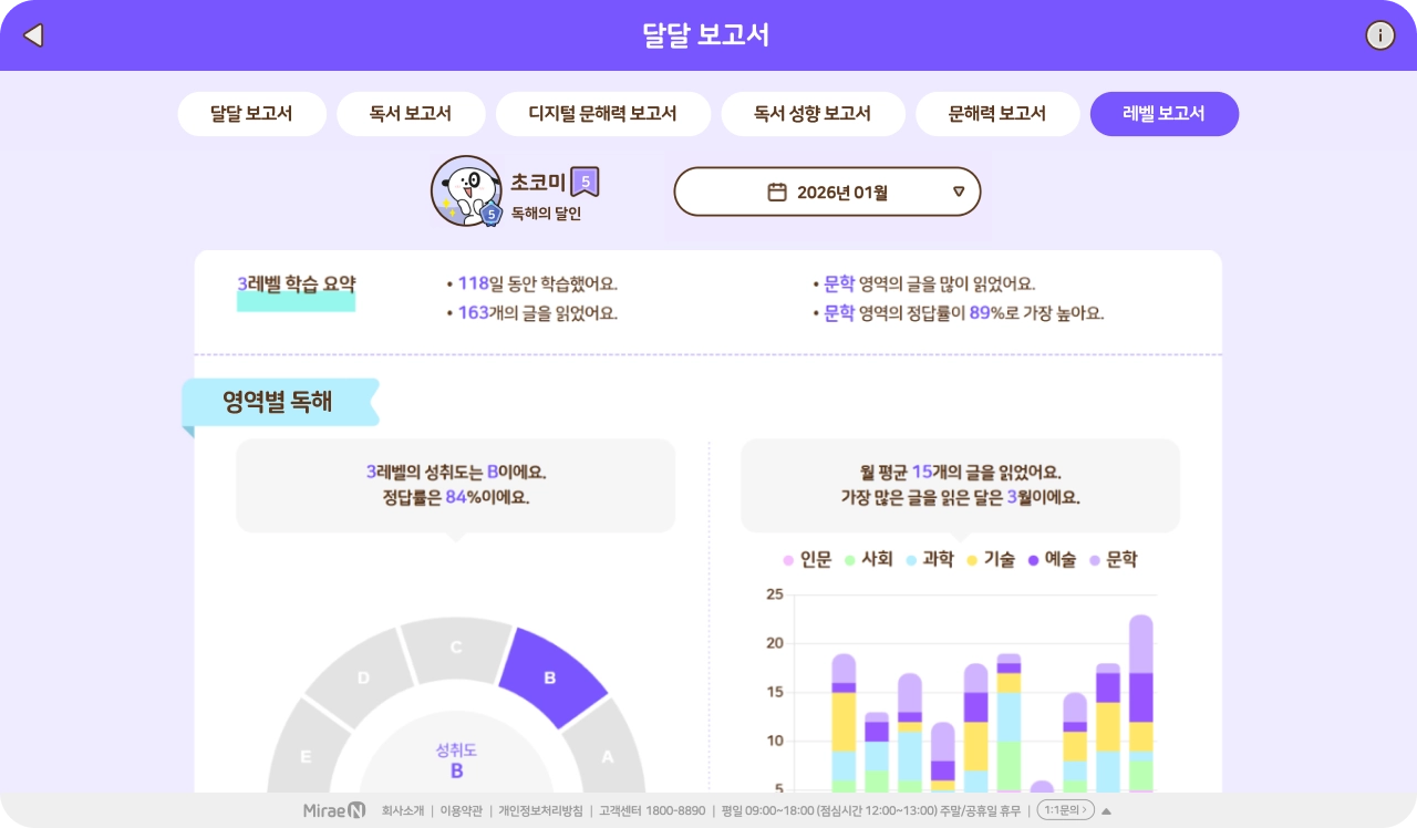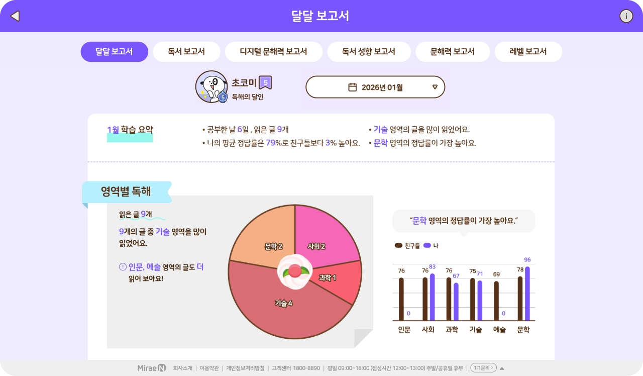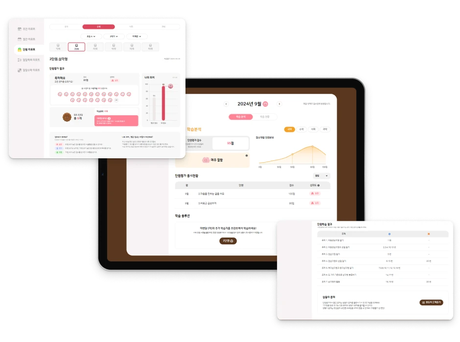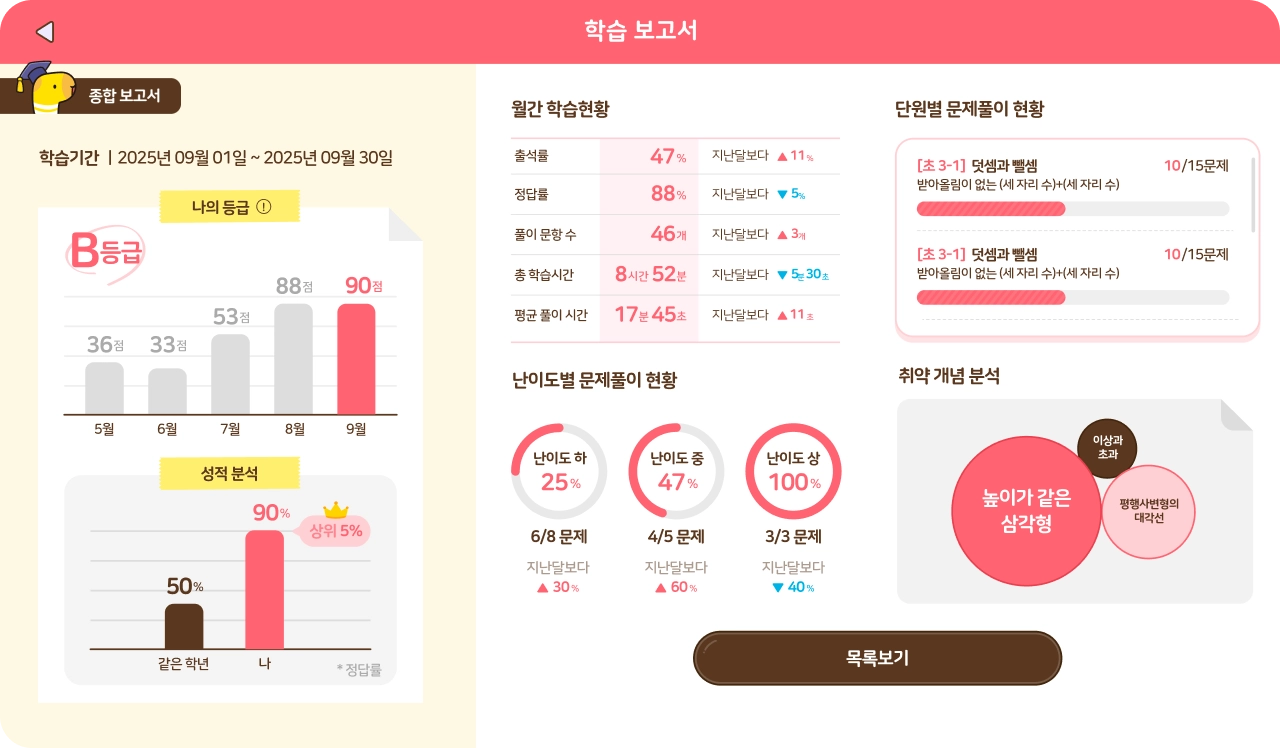 단원, 월별 학습 결과를 한 눈에 제공해