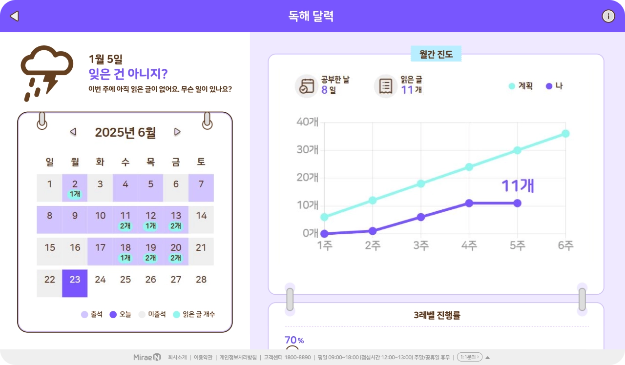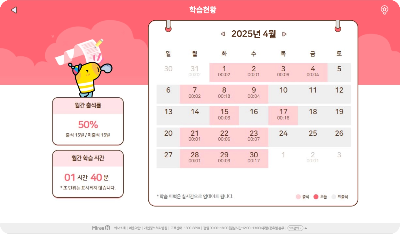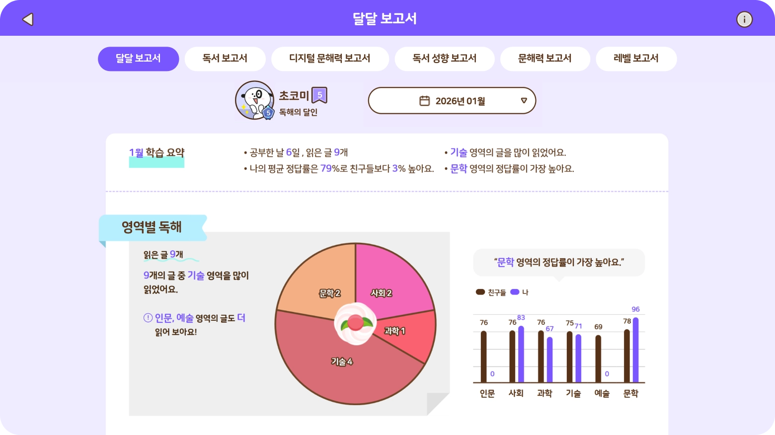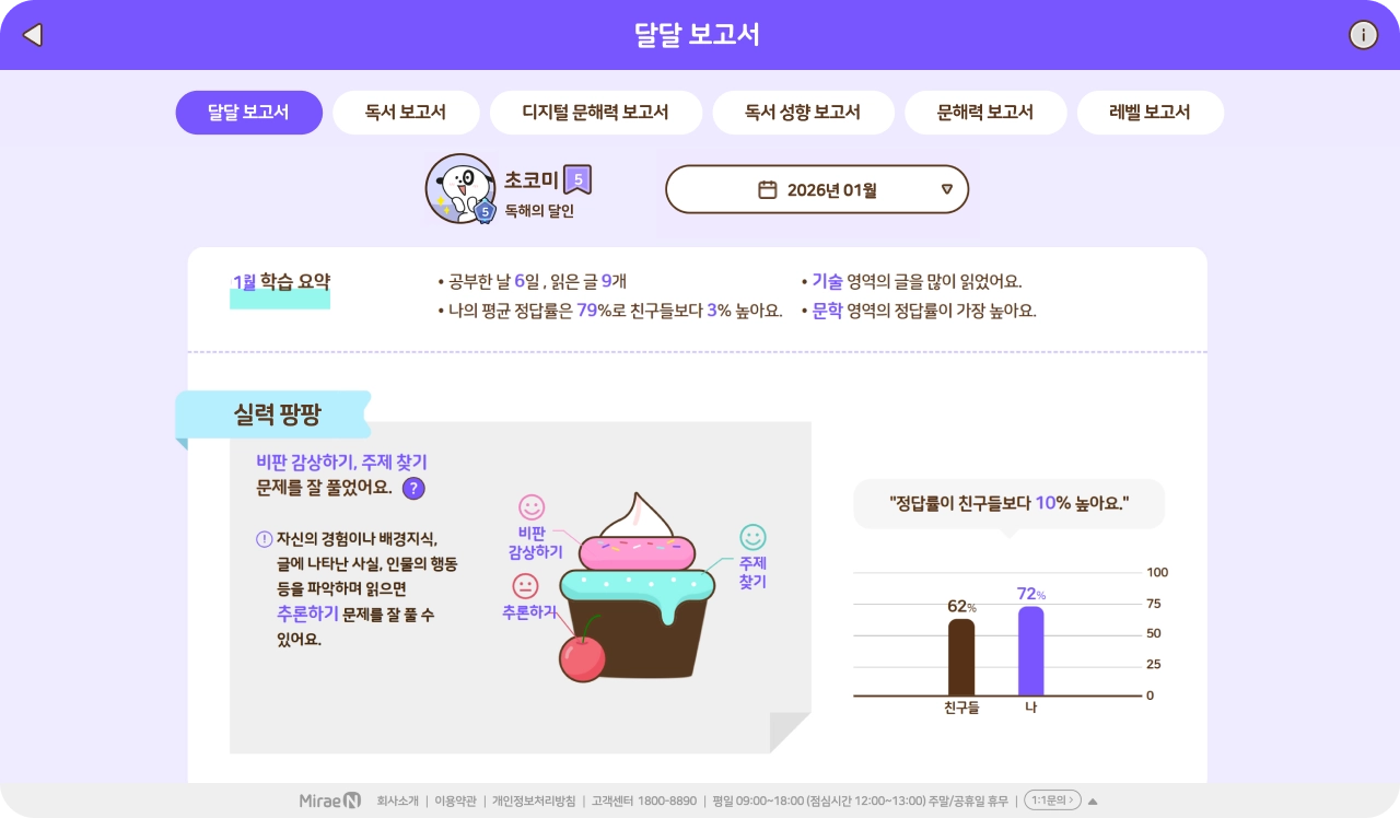 단원, 월별 학습 결과를 한 눈에 제공해