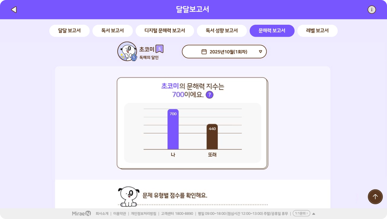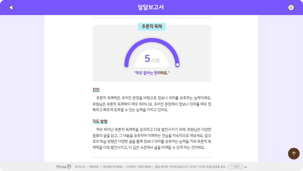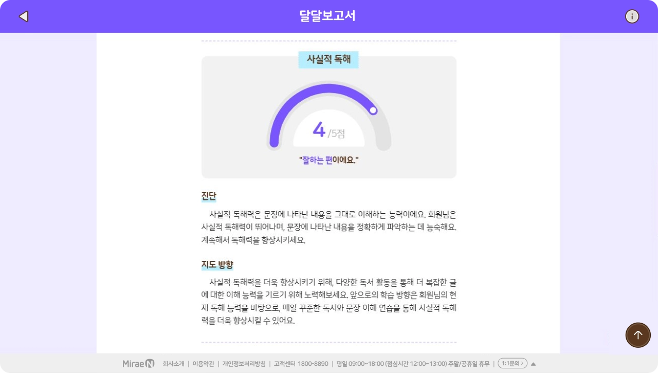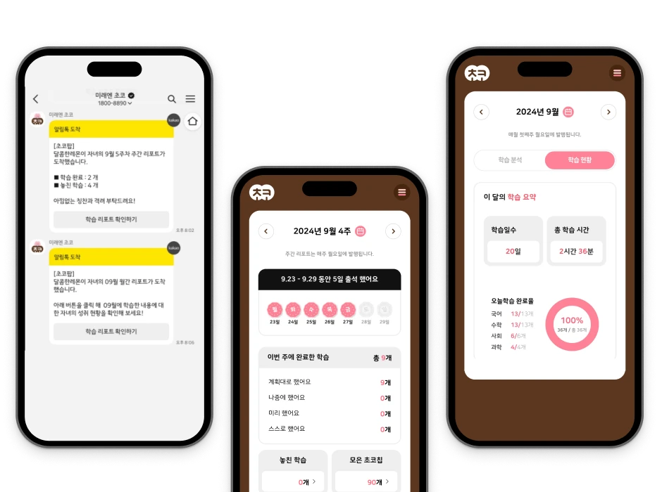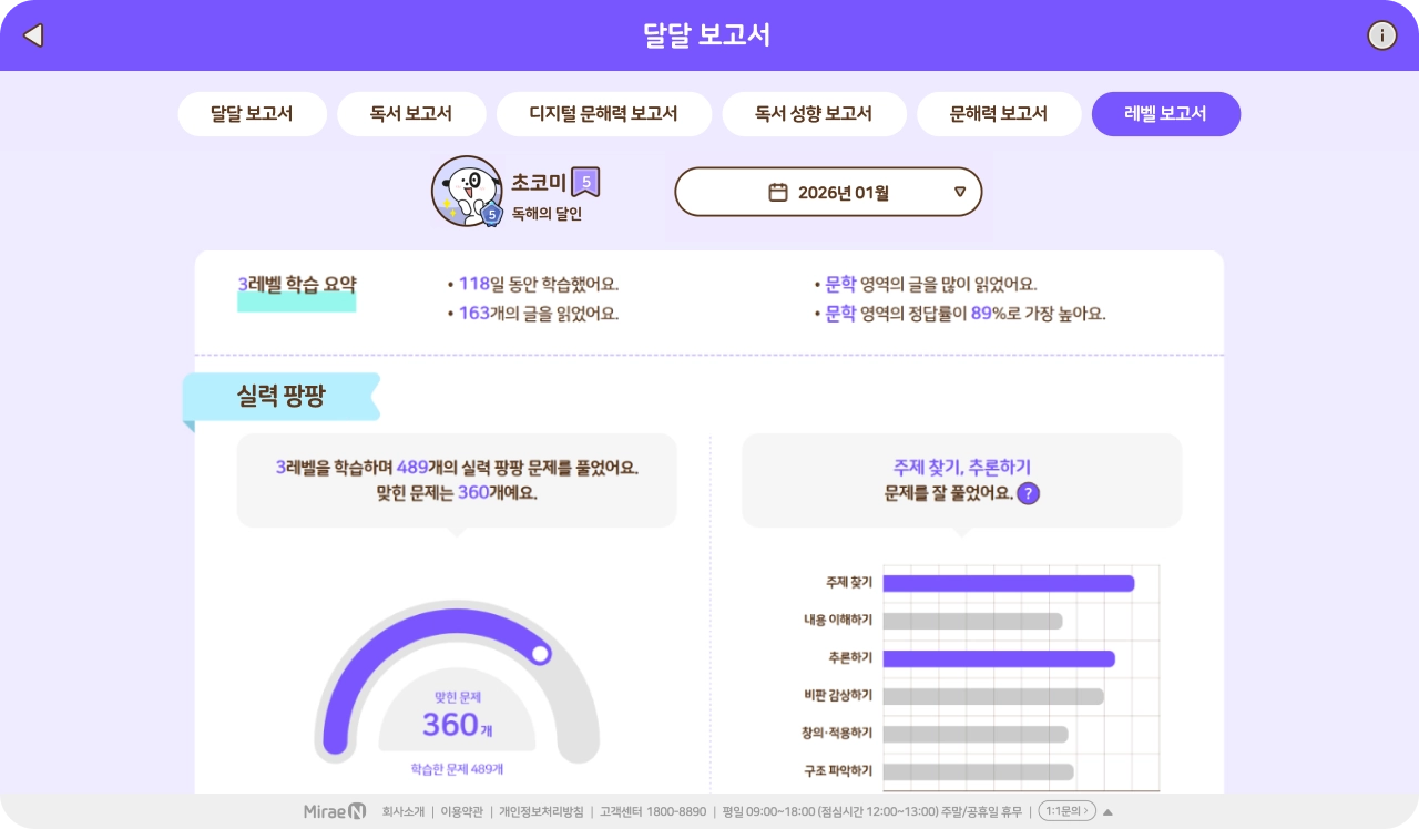 단원, 주간, 월간 리포트 및 성취도 분석 제공