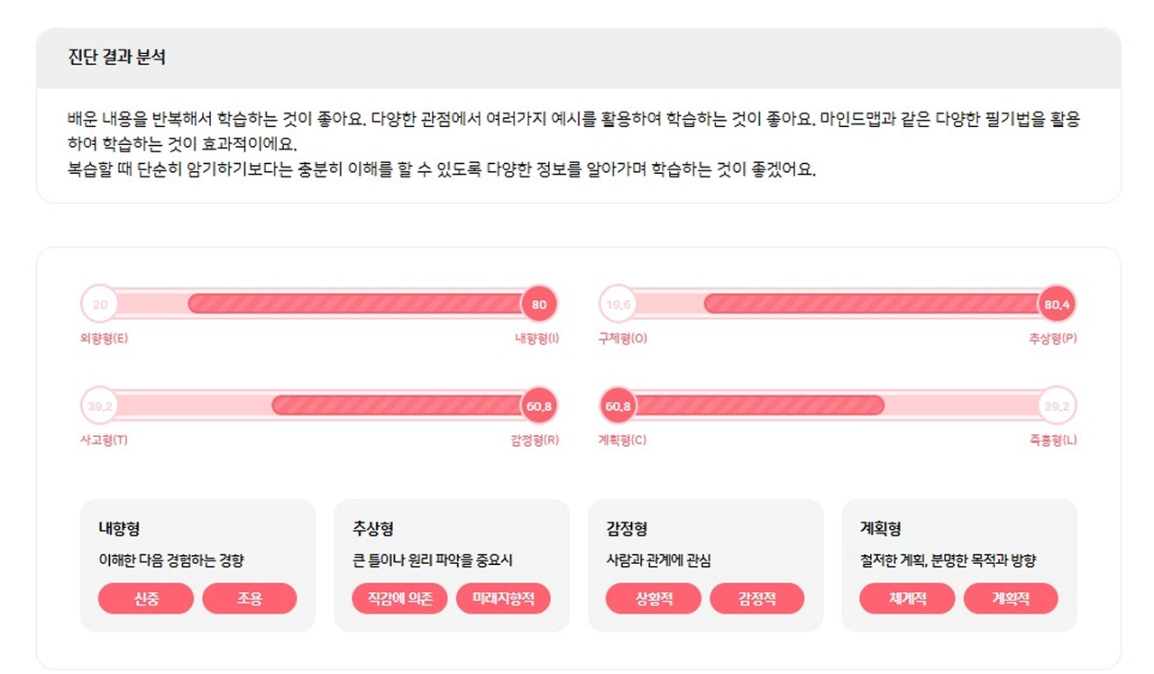 적절한 학습 레벨을 추천합니다.