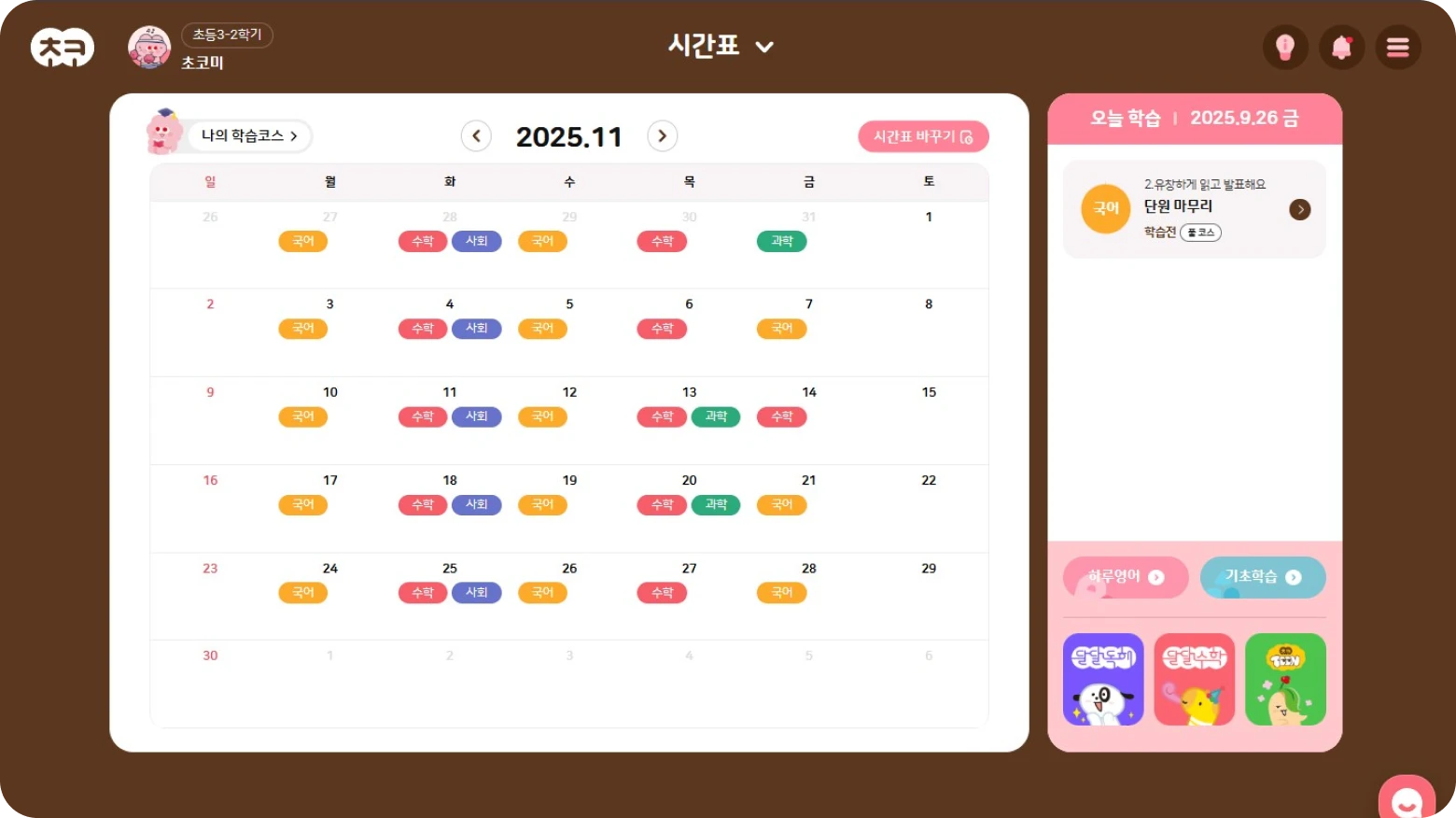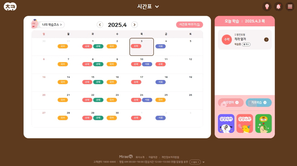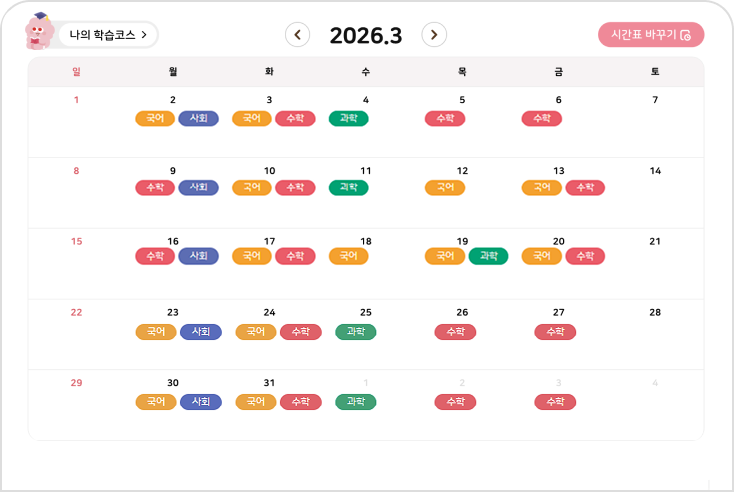 아이 학교 교과서에 맞춘 시간표 제공
