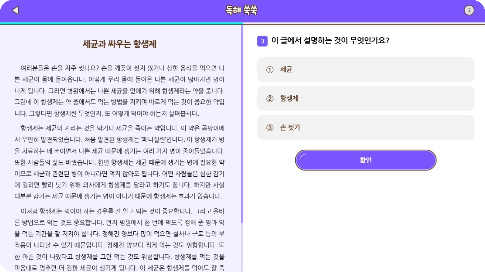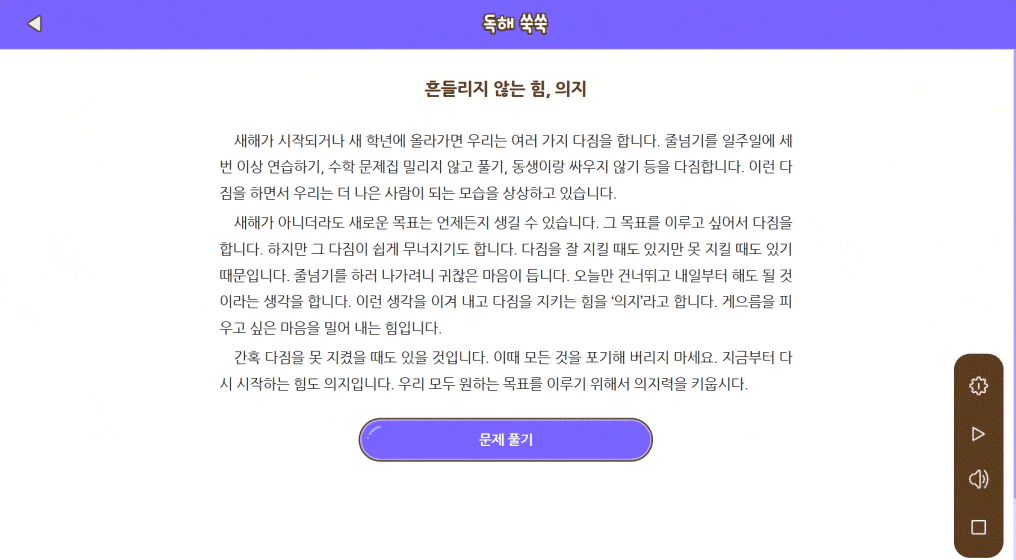 수능 유형 문제로 문해력을 다질 수 있습니다.
