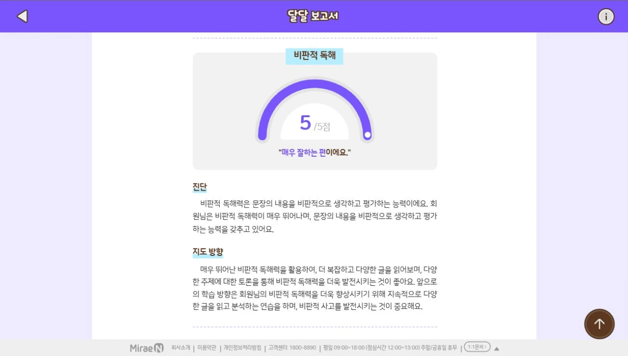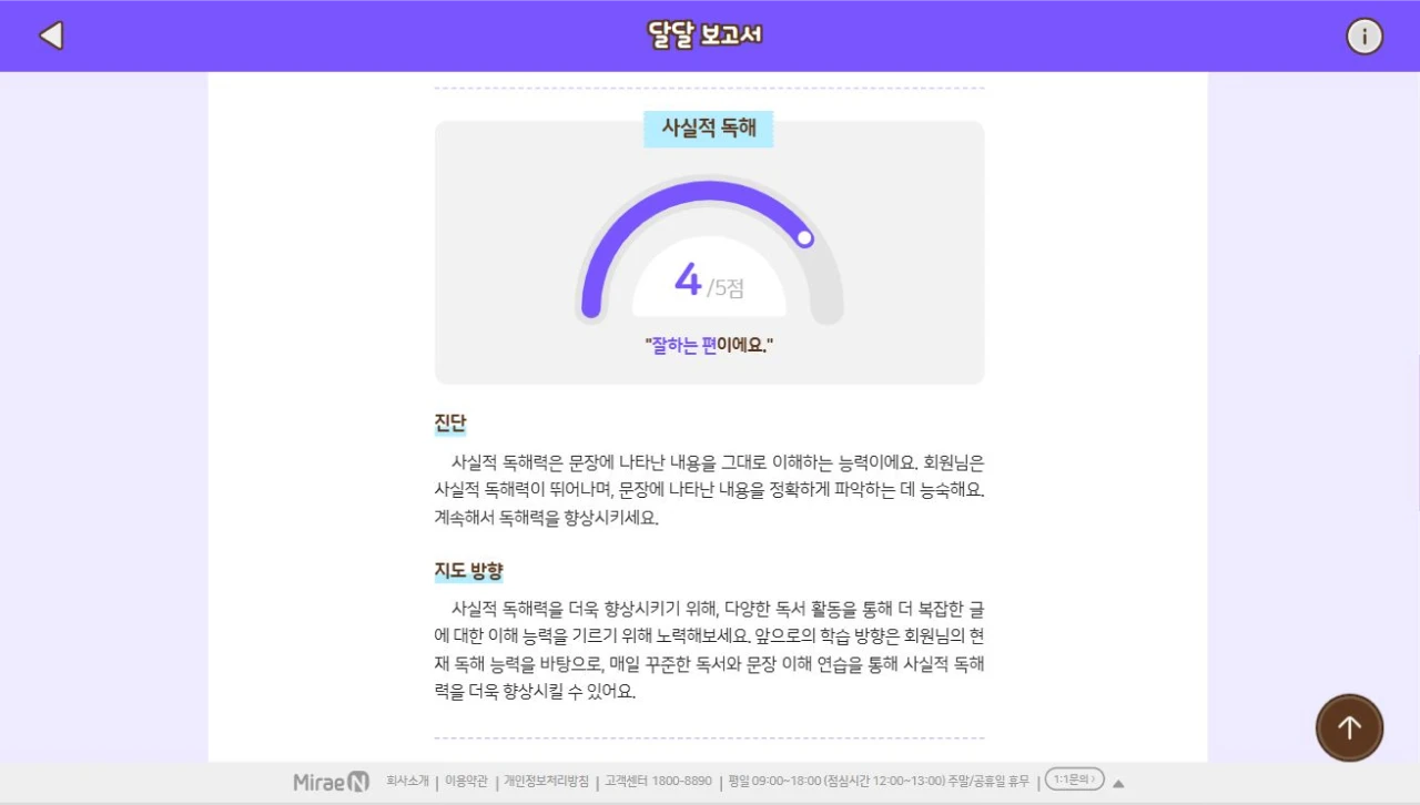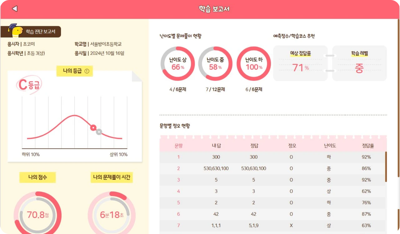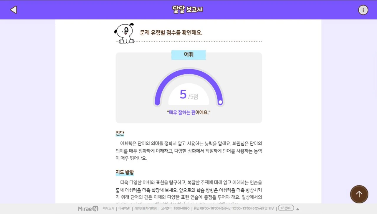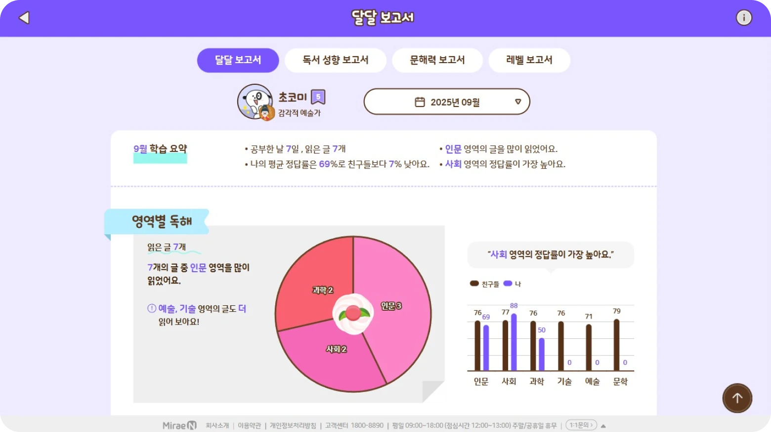 단원, 주간, 월간 리포트 및 성취도 분석 제공