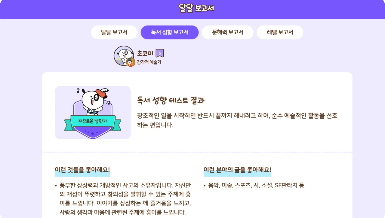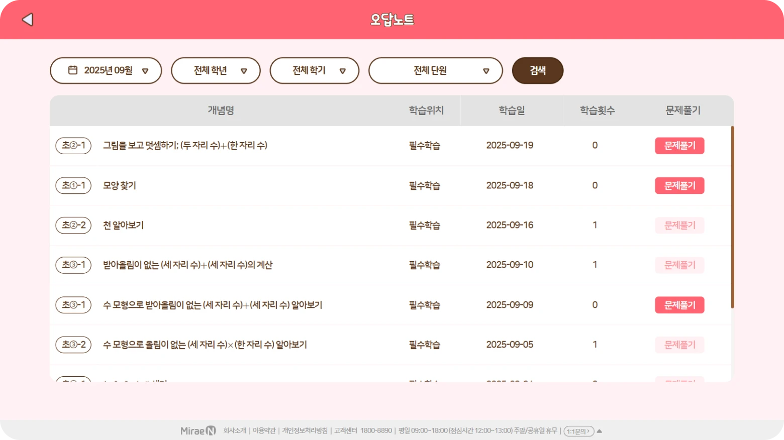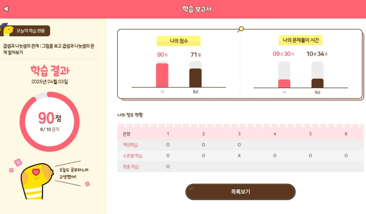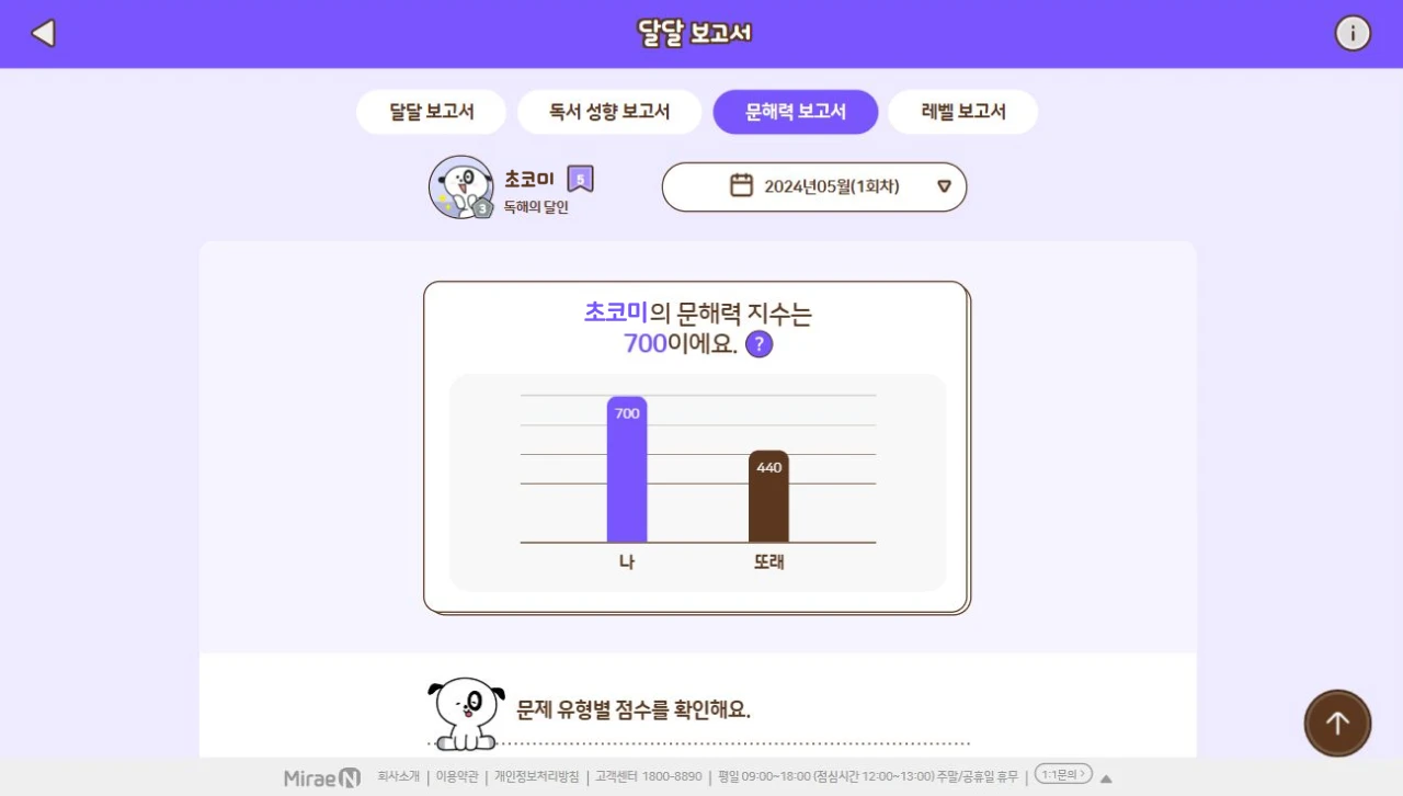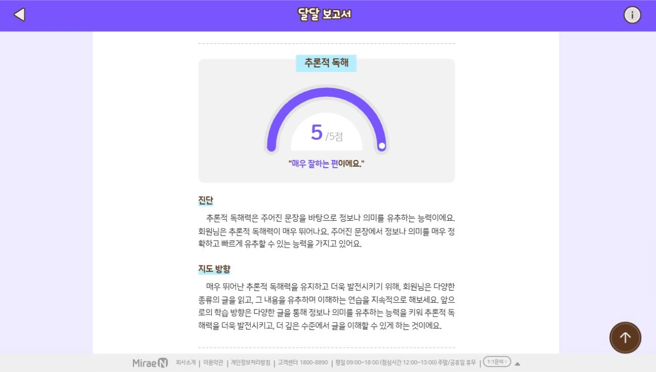 단원, 주간, 월간 리포트 및 성취도 분석 제공