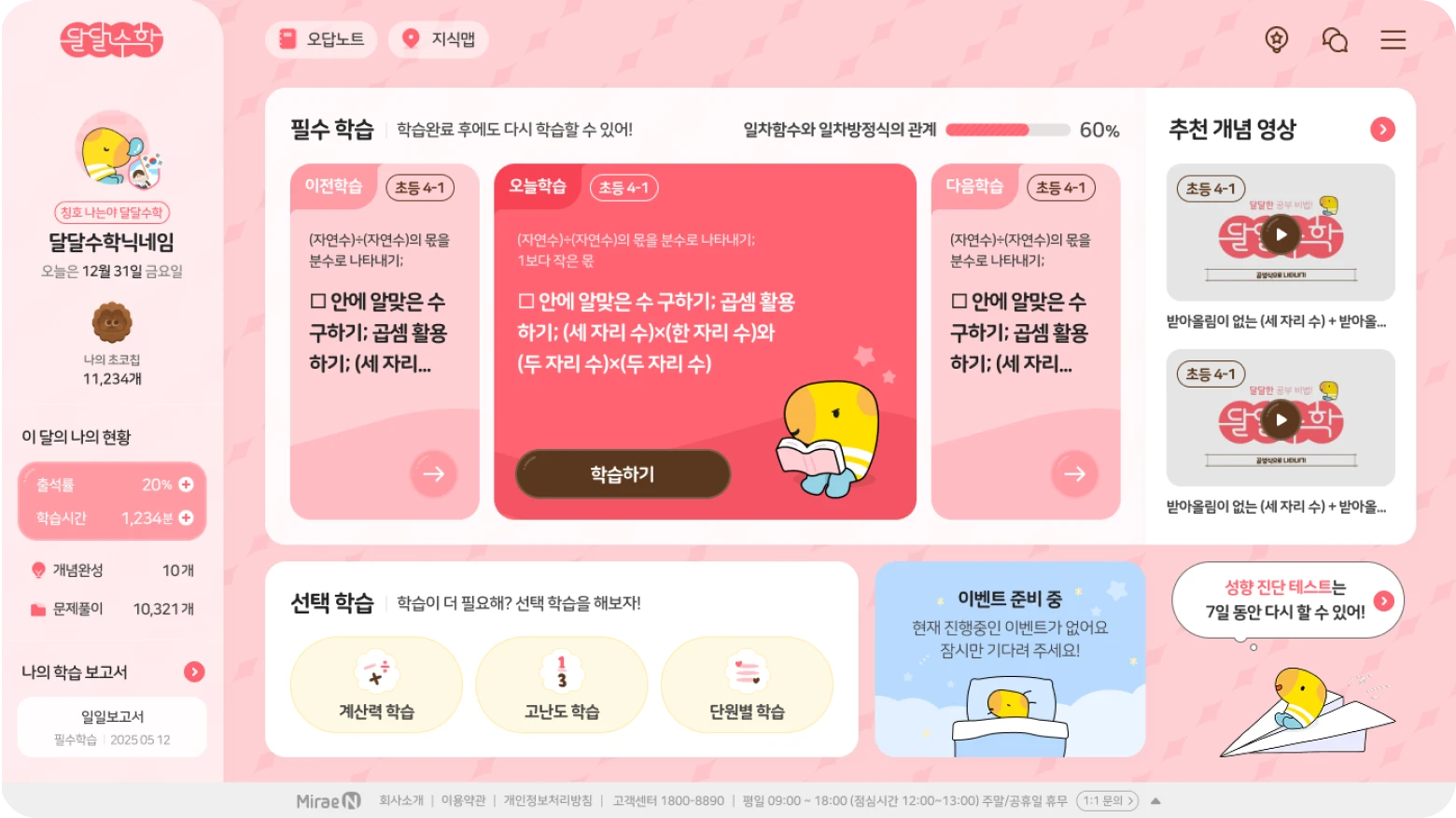 - 특화 학습 AI 솔루션으로 과목별 특화 학습 문해력, 수학 집중, *밀착 영어 *2026년 상반기 오픈 예정
