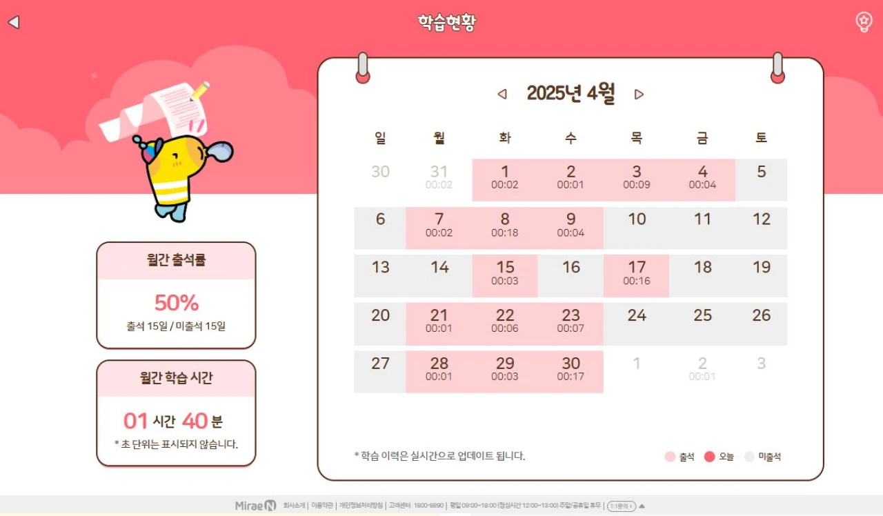 놓친 학습, 완료한 학습 알림 메시지 제공